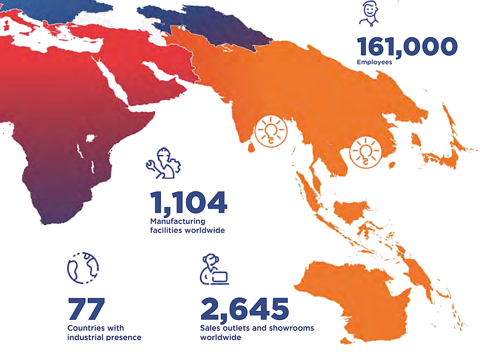The company operates in over 100 countries with more than 400 production sites and around 32,000 employees. Its customers include major construction contractors, automakers, packaging companies, and energy firms.