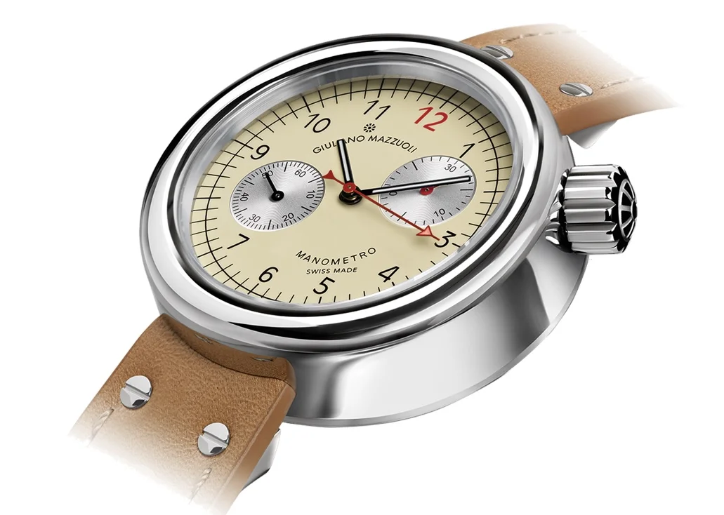 Mazzuoli blends Italian design simplicity with high-end Swiss movement engineering, typically using Swiss ETA automatic calibres paired with bold case shapes. His first and most iconic creation, the Manometro (Italian for “pressure gauge”), was inspired by industrial manometers and debuted in 2004, quickly becoming a cult favourite among design-savvy collectors.