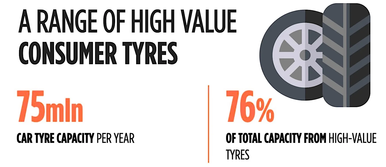 The company manufactures nearly 100 million tires annually and supplies them to 160+ countries worldwide, serving passenger cars, SUVs, light trucks, commercial vehicles, and performance segments.