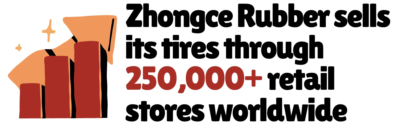 Zhongce Rubber has a vast global reach. Its tires are sold through over 250,000 retail stores and distributed by more than 1,200 dealers worldwide.
