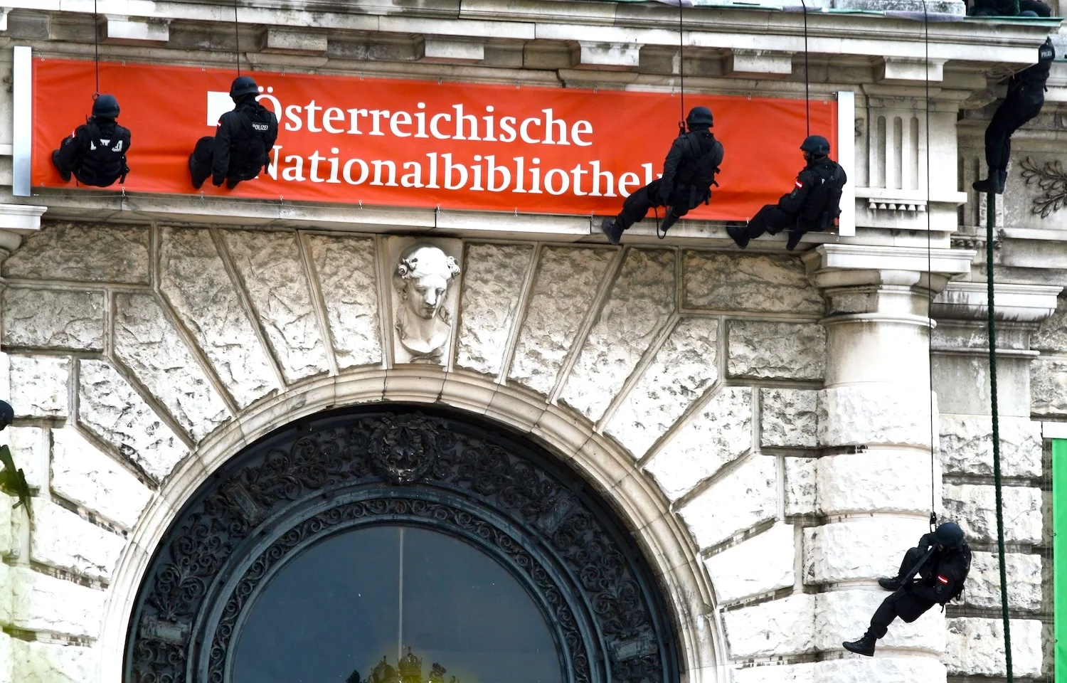 GSG 9 operators rappel on a German building | Credit: Wikimedia Commons