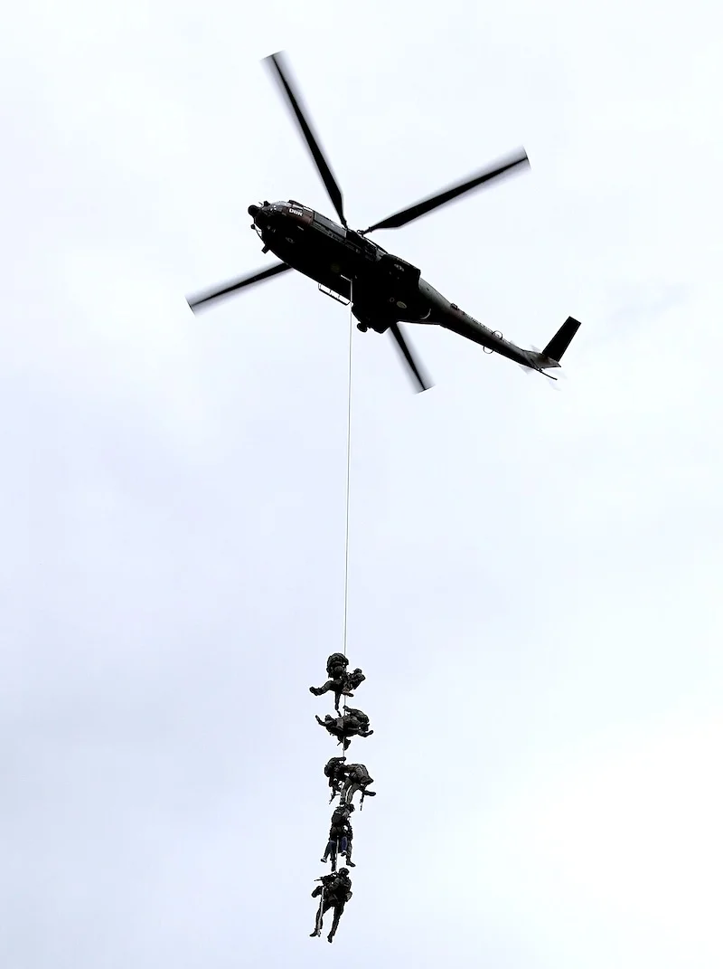 GIGN security team extracting via helicopter during a demo
