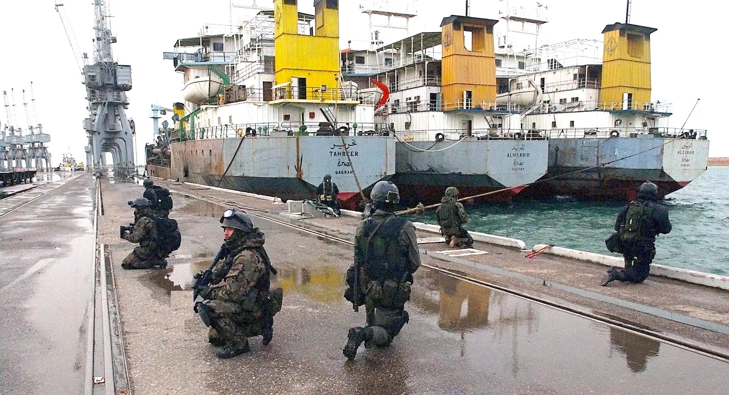 Polish GROM personnel secure a section of the port of Umm Qasr