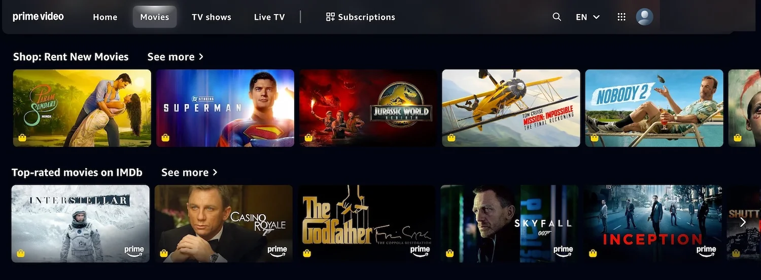 It gives access to a large catalog of movies, TV shows, and Amazon Originals with the ability to rent or buy premium titles on demand. This approach gives Amazon a revenue advantage that goes beyond subscription income.