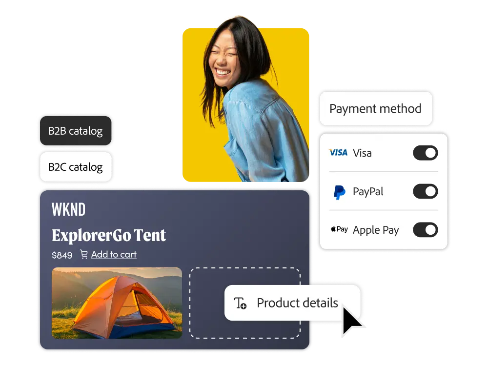 Designed for large businesses, Adobe Commerce delivers unparalleled performance. It allows you to create stunning websites and deliver engaging shopping experiences to all types of customers — from B2C and B2B to B2B2C.