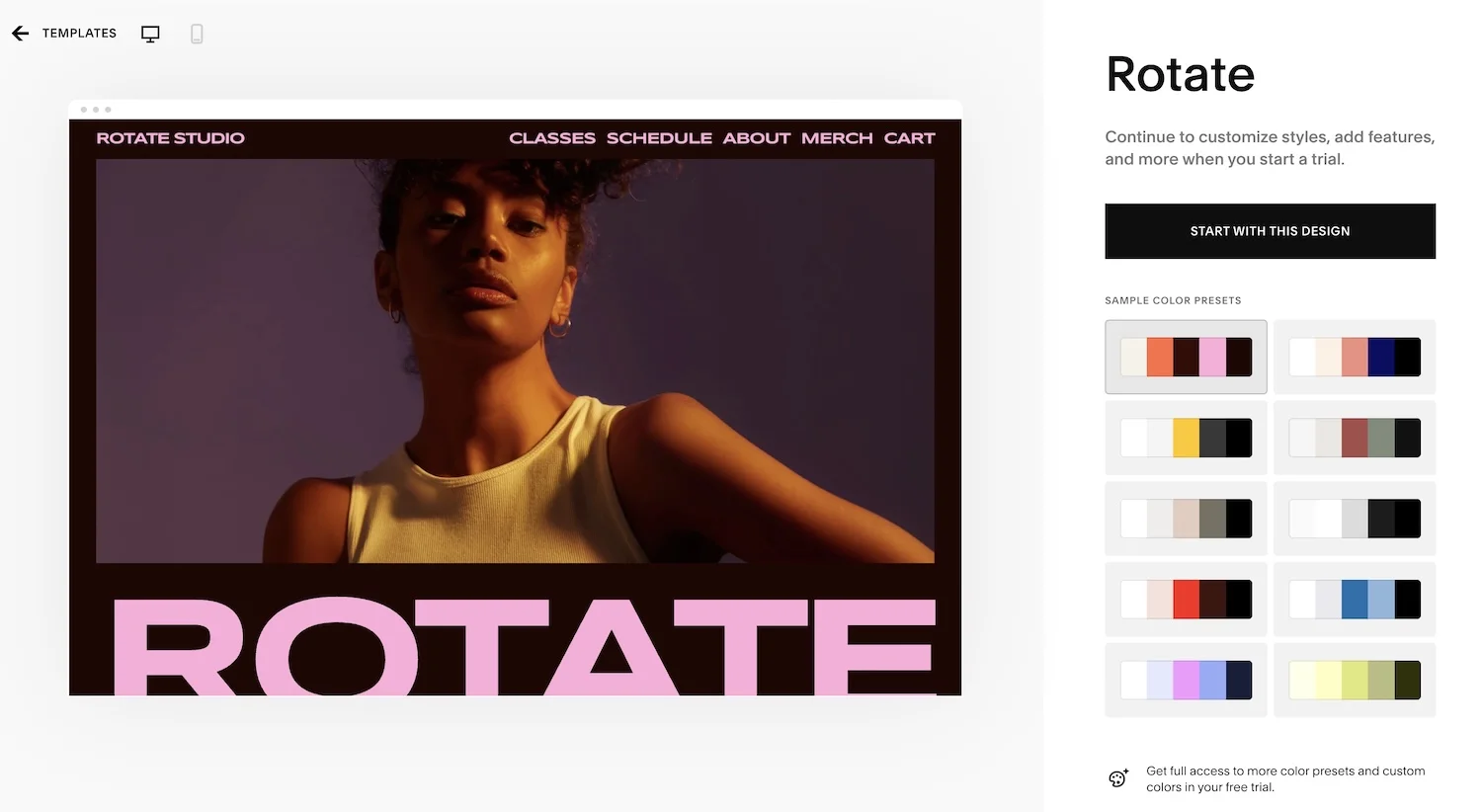 Squarespace lets you use pre-designed website templates and drag-and-drop elements to modify online stores. You can choose from hundreds of industry-leading templates, color palettes, and fonts that best fit your professional needs and personal style.