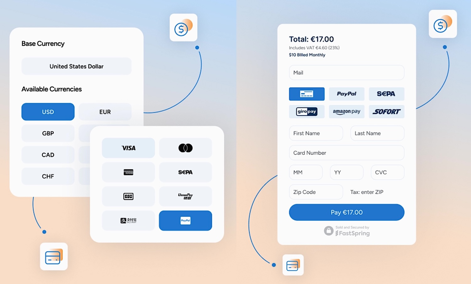 FastSpring’s eCommerce solution helps you streamline processes related to subscription management, payment processing, recurring billing, tax collection, data security, and more.