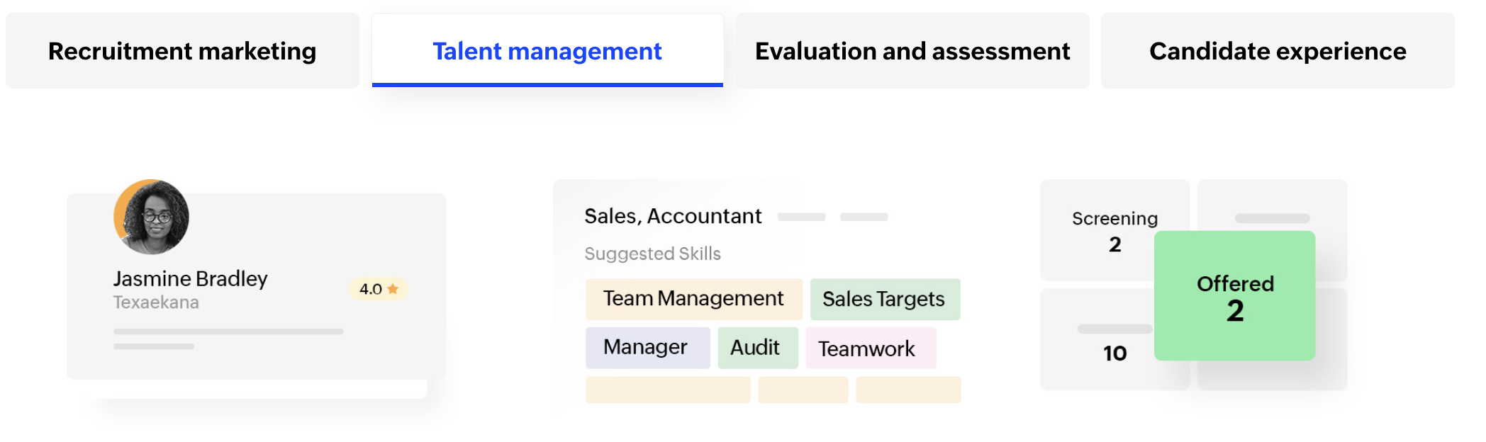 Zoho Recruit is a full-featured applicant tracking system designed to provide end-to-end hiring solutions for corporate HRs, staffing agencies, and the temporary workforce. It has a wide range of functionality covering the entire recruitment process, from sourcing and screening to interviewing and onboarding candidates.