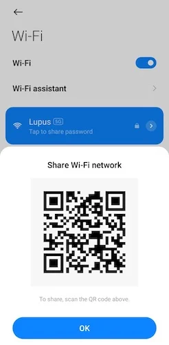 The latest Android versions don’t show your network security key. However, they allow you to share the WiFi network through a QR code.